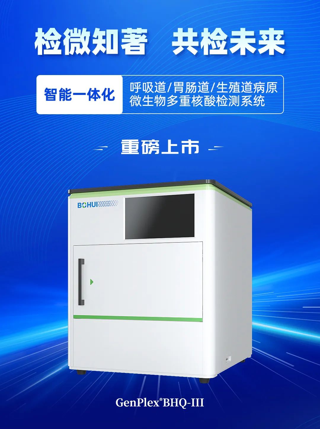 隨著倒計時的響起,博暉創(chuàng)新全場景呼吸道多病原聯(lián)檢解決方案暨微流控全自動多病原核酸檢測分析系統(tǒng)(BHQ-III)震撼上市。這一科技創(chuàng)新的里程碑標志著博暉創(chuàng)新在分子診斷領(lǐng)域邁出了堅實的一步,將攜手各界共同開啟分子診斷的“芯”篇章。