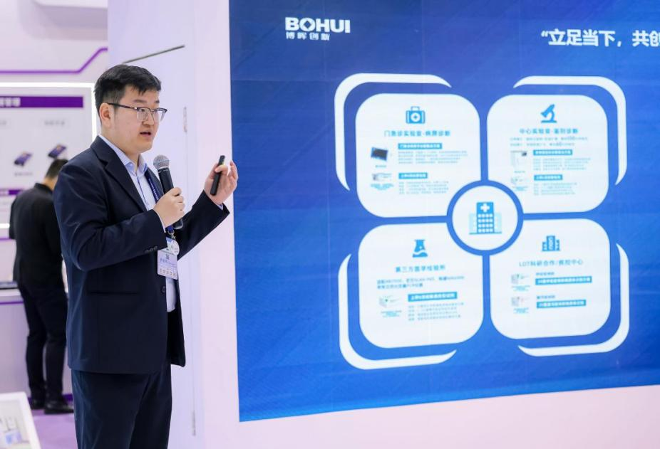 呼吸道產(chǎn)線產(chǎn)品經(jīng)理高健詳細介紹了博暉創(chuàng)新全場景呼吸道多病原聯(lián)檢解決方案。他回顧了公司在微流控分子診斷技術(shù)領(lǐng)域所取得的成果,并展望了未來以矩陣式產(chǎn)品組合為依托打造呼吸道多病原檢測解決方案的愿景。