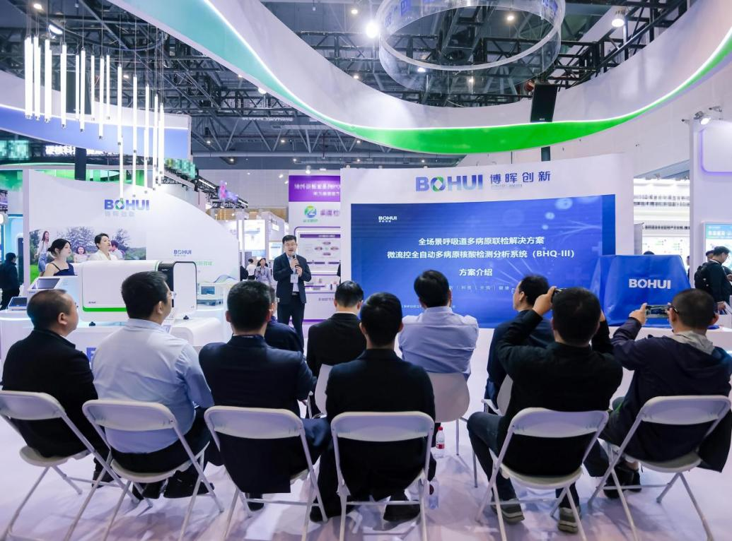 博暉創(chuàng)新全場景呼吸道多病原聯(lián)檢解決方案發(fā)布會于3月22日上午10點在3-C0903展臺圓滿召開。此次發(fā)布會匯聚了來自科技、醫(yī)療、公共衛(wèi)生等領(lǐng)域的眾多領(lǐng)導(dǎo)、專家和同仁,共同見證了博暉創(chuàng)新在分子診斷領(lǐng)域的最新成果——微流控全自動多病原核酸檢測分析系統(tǒng)(BHQ-III)的盛大發(fā)布。
